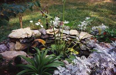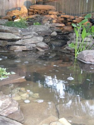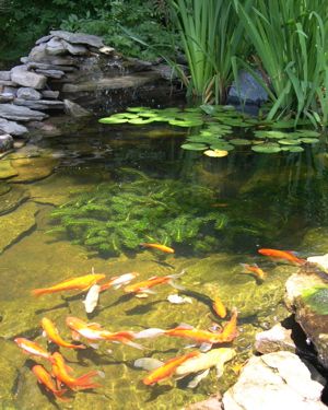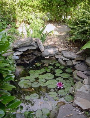 Pond area with water, bog, and shade plants