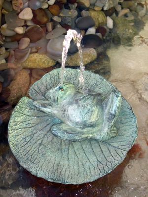 Copper Frog on Lillypad with Agate Pebbles in Pool.