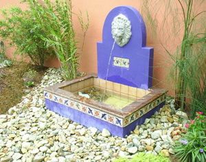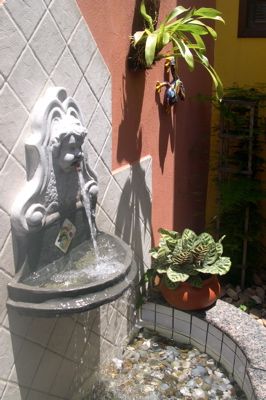 Concrete Structure Features Italian Lion Head, Portugese and Mexican Tiles, Brazilian Granite and Agate Pebbles in Pool.