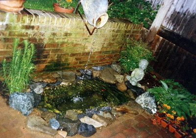 Antique Pot Pours Water into 3'x10' Fish Pond